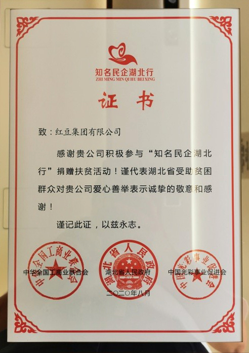 "Take a hand and pull in the most difficult period in Hubei" is an important instruction given by General Secretary Xi Jinping when inspecting the prevention and control of the COVID-19 in Hubei Province. HOdo Group actively responded to the spirit of the general secretary’s instructions and donated 1 million yuan to the Hubei Provincial Foundation for Poverty Alleviation to support Hubei’s anti-epidemic revival, and it has been used to support a total of 500 poor people in Huanggang City, Suixian City, Hubei Province, and Suixian City, etc. which has been recognized and appreciated by Hubei Federation of Industry and Commerce. At this conference, the leaders of the All-China Federation of Industry and Commerce, the Hubei Provincial Party Committee and the Provincial Government and the China Guangcai Society issued certificates of honor to representatives of private enterprises such as HOdo Group, and expressed their gratitude to the enterprises for actively participating in the poverty alleviation activities of Hubei.